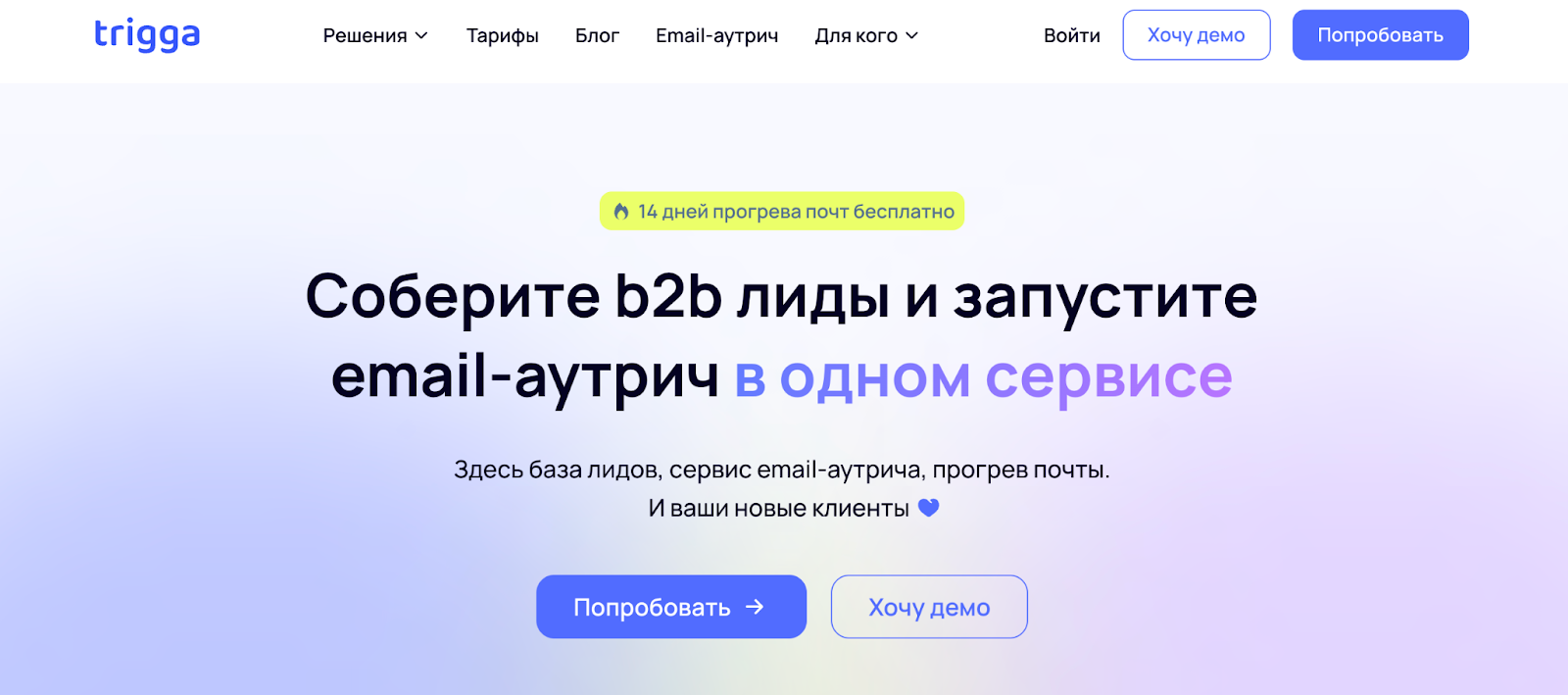 Что умеет: Trigga - это российская платформа, которая объединяет поиск клиентов и запуск цепочек писем. В их базе 3,5 миллиона контактов из B2B-сегмента. Можно фильтровать по должности, отрасли, размеру компании.