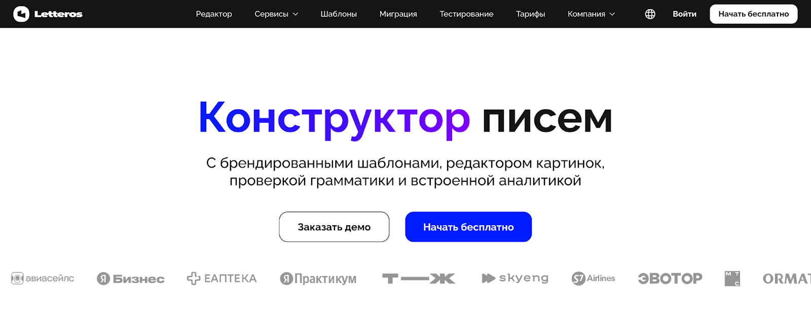 Что умеет: Letteros - новый игрок на рынке. Главная фишка - возможность запускать рассылки прямо с личных ящиков Gmail, Яндекс и Mail.ru. Не нужно покупать отдельные домены, настраивать прогрев - работаете с тем, что уже есть.